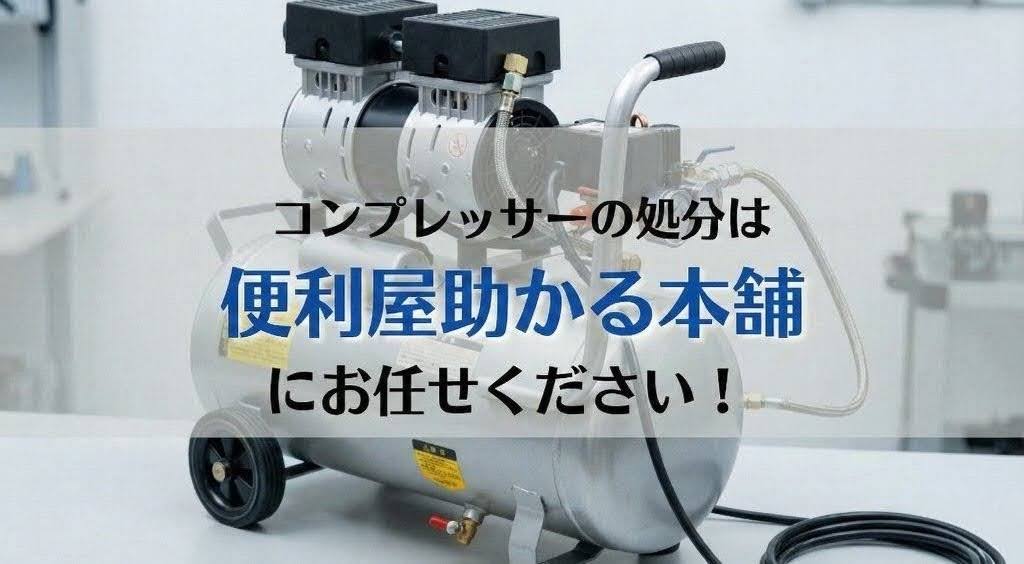 行政の回収(集積所)を利用するのが最も費用を抑えられます。基本的には無料で処分可能です。 ただし、コンプレッサーは重量があり、内部に高圧空気やオイルが残っている可能性があるため、安全対策が必須です。