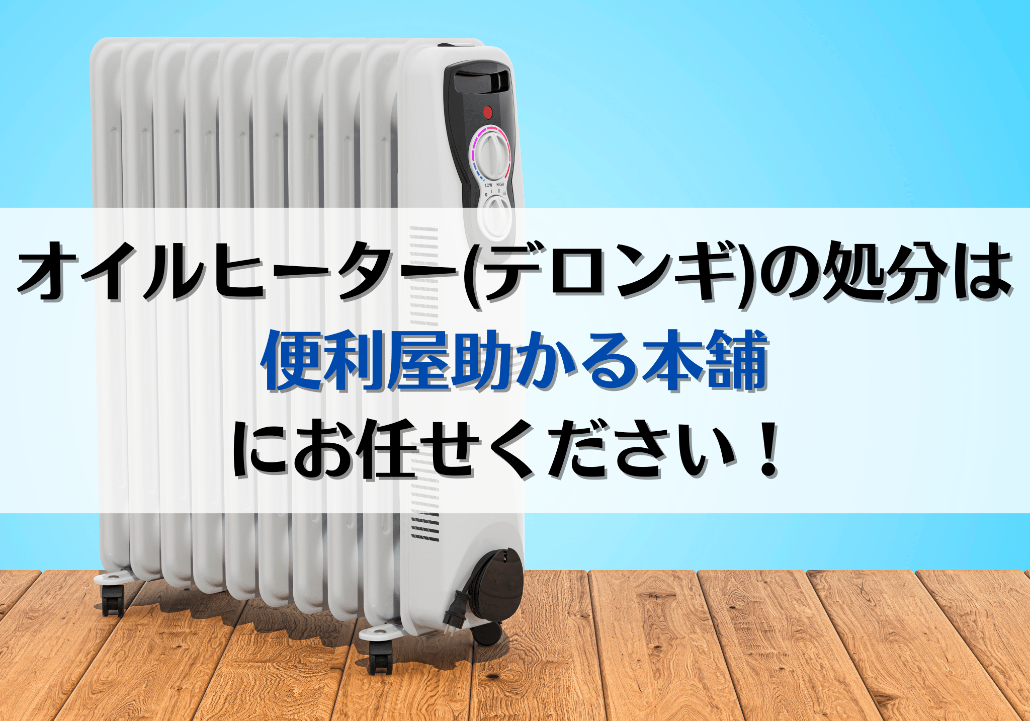 富士市でオイルヒーター(デロンギ)の処分にお困りの方は、便利屋「助かる本舗」におまかせください。処分費用は3,300円から対応いたします。