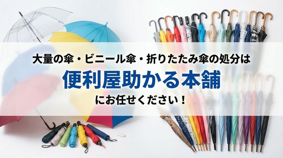 大量の傘・ビニール傘・折りたたみ傘の処分にお困りの方は、「便利屋助かる本舗」にお任せください。